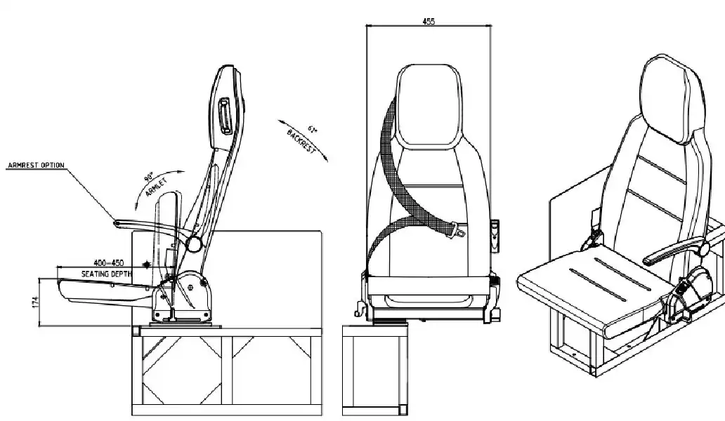 Toutes les parties du siège sont garnies de cuir artificiel conforme aux normes internationales d’inflammabilité ECE R118