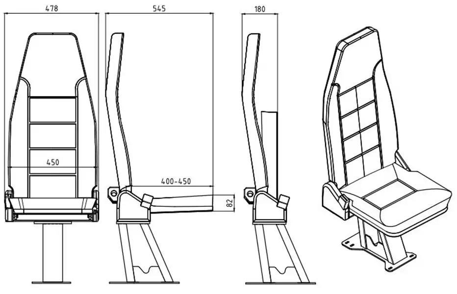Toutes les parties du siège sont garnies de cuir artificiel conforme aux normes internationales d’inflammabilité ECE R118